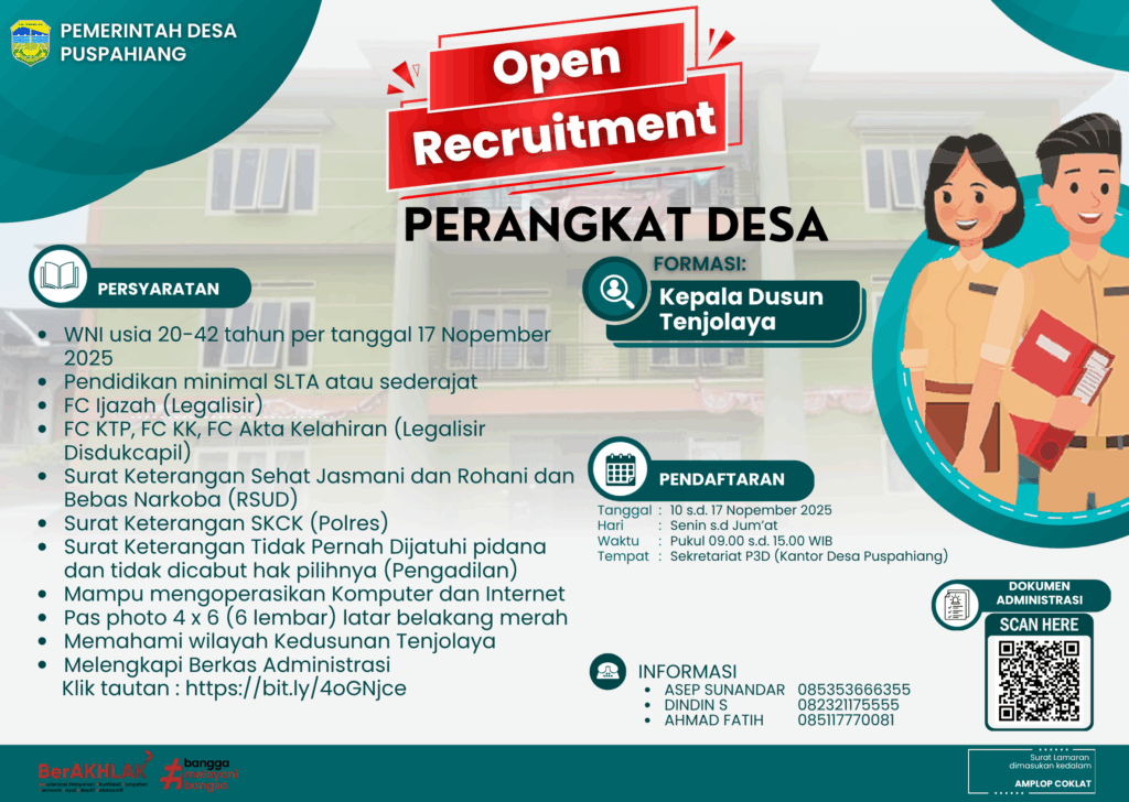 Proses rekrutmen ini merupakan upaya strategis untuk menemukan pemimpin dusun yang kompeten dan berintegritas. Kepala Dusun Tenjolaya diharapkan menjadi mitra warga dan pemerintah desa dalam memacu pembangunan dan pelayanan di tingkat akar rumput.